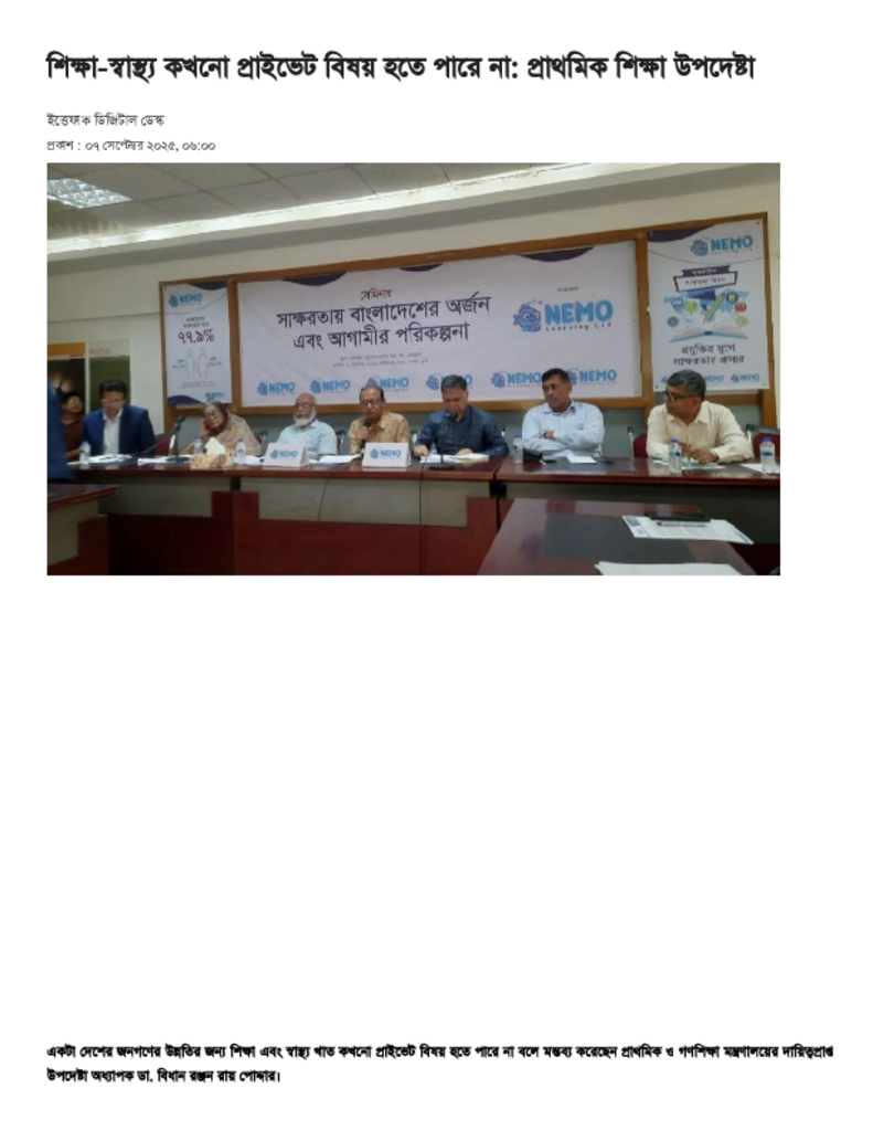 শিক্ষা-স্বাস্থ্য কখনো প্রাইভেট বিষয় হতে পারে না_ প্রাথমিক শিক্ষা উপদেষ্টা.pdf Published on 05 September 2025 Newspaper দৈনিক ইত্তেফাক Category Personal Opinion / Discussion / Commentary Download