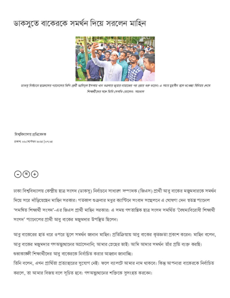 ডাকসুতে বাকেরকে সমর্থন দিয়ে সরলেন মাহিন.pdf Published on 06 September 2025 Newspaper দৈনিক সমকাল Category Student Politics General Education Download