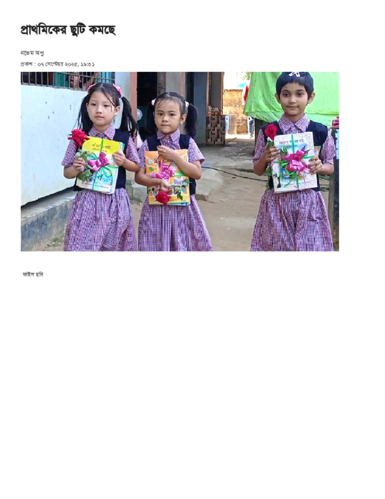প্রাথমিকের ছুটি কমছে.pdf Published on 07 September 2025 Newspaper দৈনিক ইত্তেফাক Category Educational Ministry / Departments Education Ministry / Division / Directorate Download