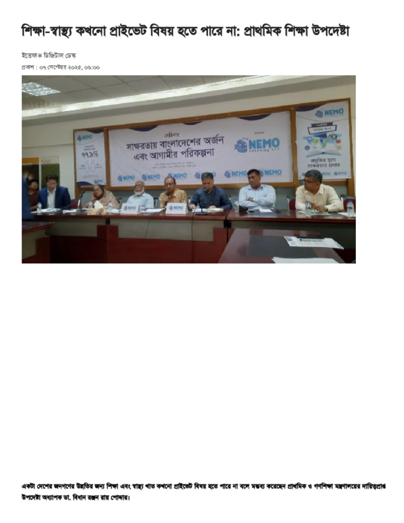 শিক্ষা-স্বাস্থ্য কখনো প্রাইভেট বিষয় হতে পারে না_ প্রাথমিক শিক্ষা উপদেষ্টা.pdf Published on 07 September 2025 Newspaper দৈনিক ইত্তেফাক Category Personal Opinion / Discussion / Commentary Download