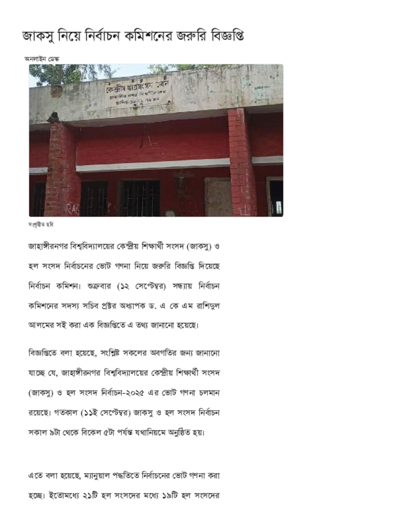 জাকসু নিয়ে নির্বাচন কমিশনের জরুরি বিজ্ঞপ্তি.pdf Published on 12 September 2025 Newspaper দৈনিক কালের কন্ঠ Category Student Politics General Education Download