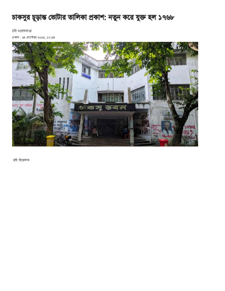 চাকসুর চূড়ান্ত ভোটার তালিকা প্রকাশ_ নতুন করে যুক্ত হল ১৭৬৮.pdf Published on 14 September 2025 Newspaper দৈনিক ইত্তেফাক Category Student Politics General Education Download