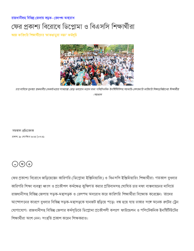 ফের প্রকাশ্য বিরোধে ডিপ্লোমা ও বিএসসি শিক্ষার্থীরা.pdf Published on 18 September 2025 Newspaper দৈনিক সমকাল Category Technical and Vocational Education Download