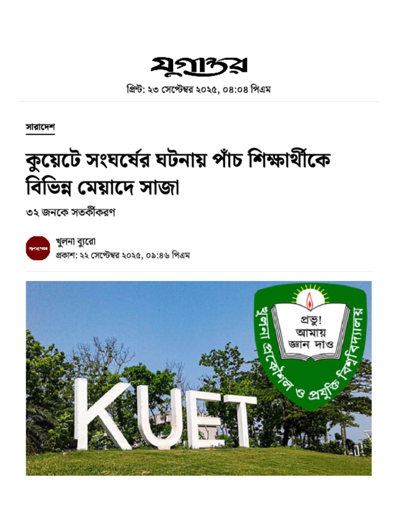 কুয়েটে সংঘর্ষের ঘটনায় পাঁচ শিক্ষার্থীকে বিভিন্ন মেয়াদে সাজা.pdf