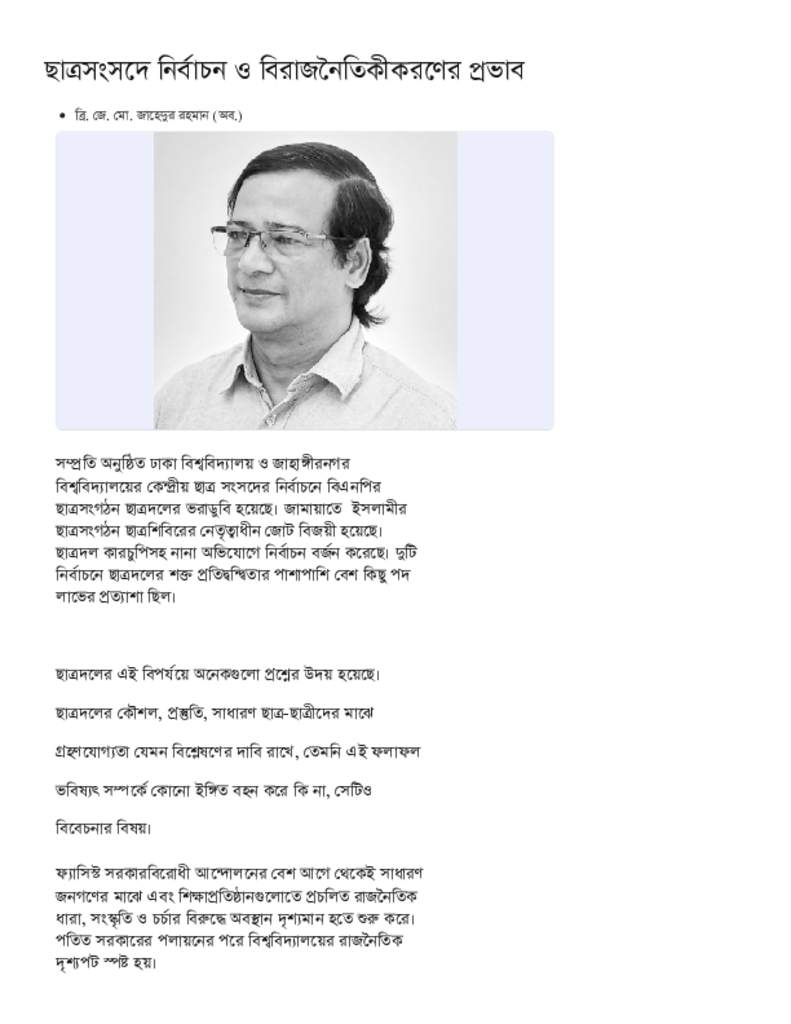ছাত্রসংসদে নির্বাচন ও বিরাজনৈতিকীকরণের প্রভাব.pdf Published on 22 September 2025 Newspaper দৈনিক কালের কন্ঠ Category Personal Opinion / Discussion / Commentary Download