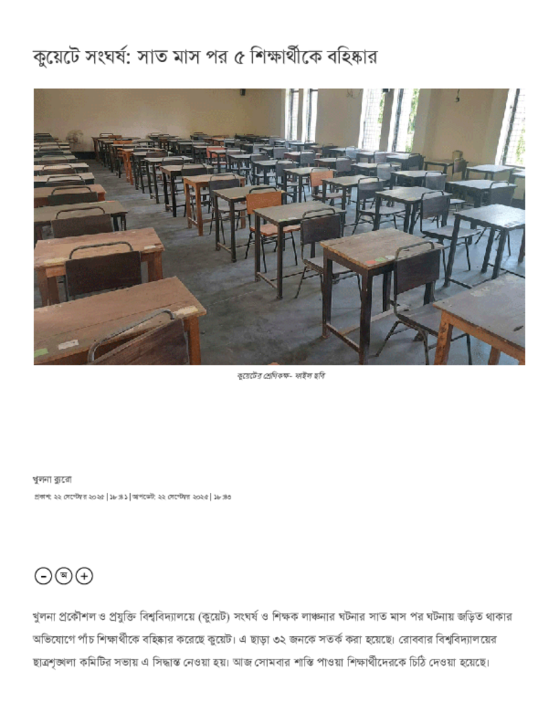 কুয়েটে সংঘর্ষ_ সাত মাস পর ৫ শিক্ষার্থীকে বহিষ্কার.pdf Published on 22 September 2025 Newspaper দৈনিক সমকাল Category Campus Terrorism General Education Download