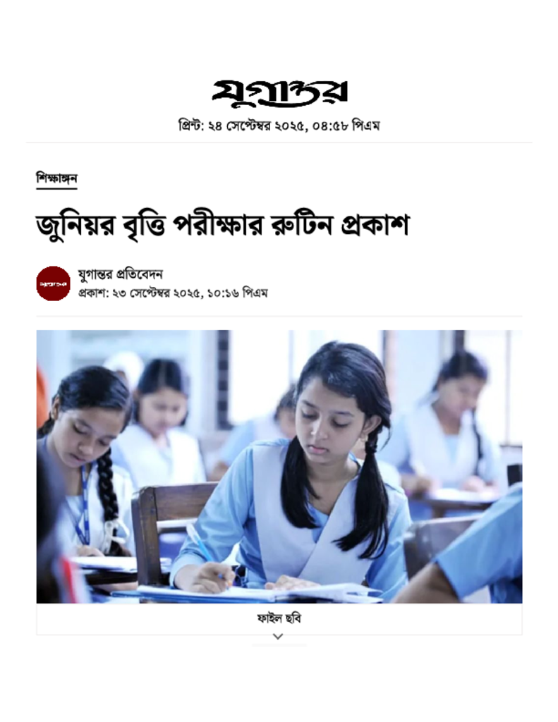 জুনিয়র বৃত্তি পরীক্ষার রুটিন প্রকাশ.pdf Published on 23 September 2025 Newspaper দৈনিক যুগান্তর Category Educational Ministry / Departments Download