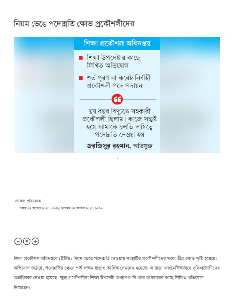 নিয়ম ভেঙে পদোন্নতি ক্ষোভ প্রকৌশলীদের.pdf Published on 24 September 2025 Newspaper দৈনিক সমকাল Category Personal Opinion / Discussion / Commentary Download