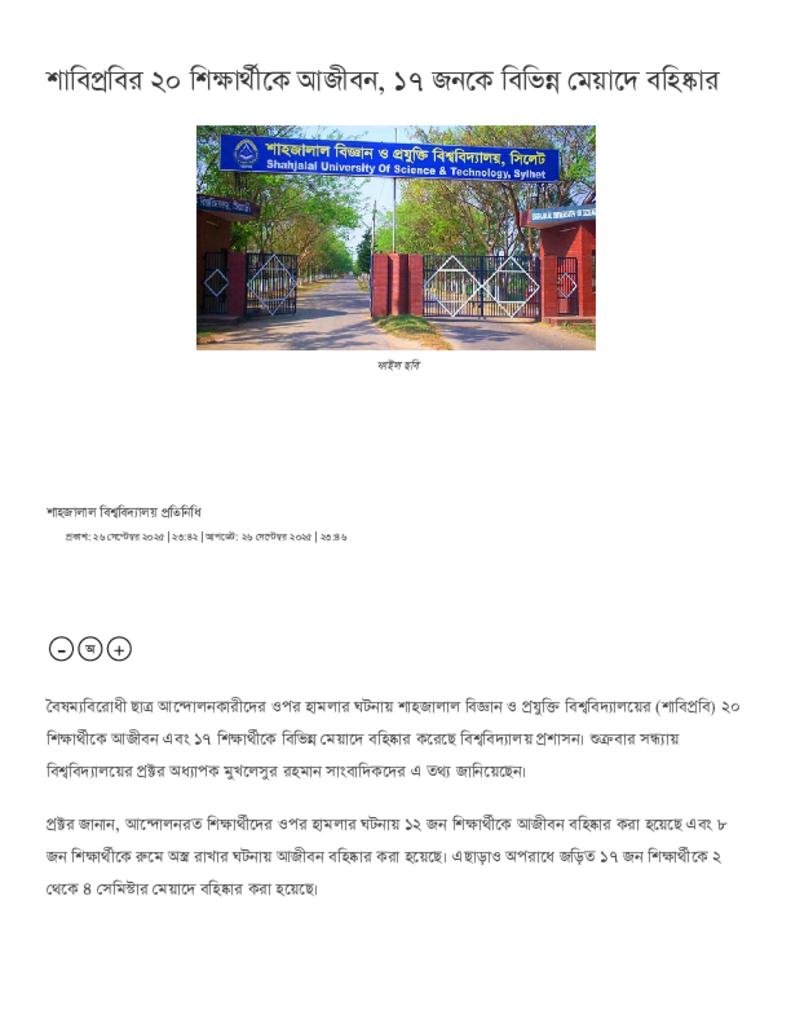 শাবিপ্রবির ২০ শিক্ষার্থীকে আজীবন, ১৭ জনকে বিভিন্ন মেয়াদে বহিষ্কার.pdf Published on 26 September 2025 Newspaper দৈনিক সমকাল Category Others Download