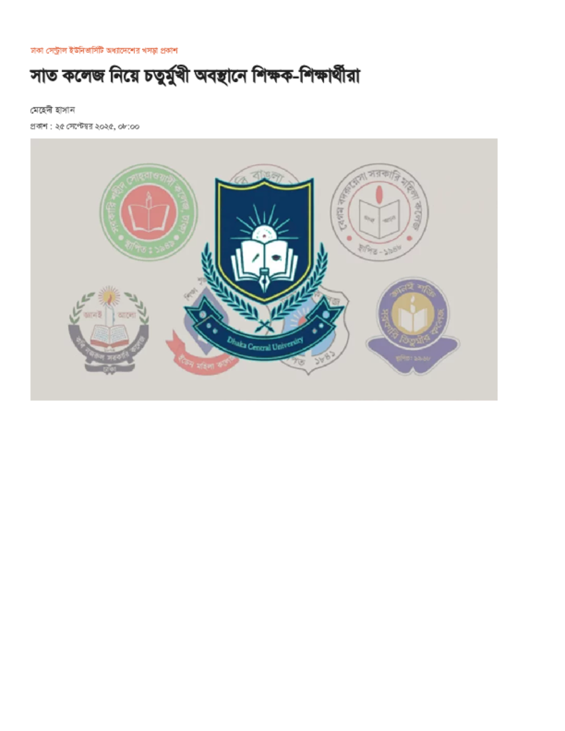 সাত কলেজ নিয়ে চতুর্মুখী অবস্থানে শিক্ষক-শিক্ষার্থীরা.pdf Published on 25 September 2025 Newspaper দৈনিক ইত্তেফাক Category Personal Opinion / Discussion / Commentary General Education Download