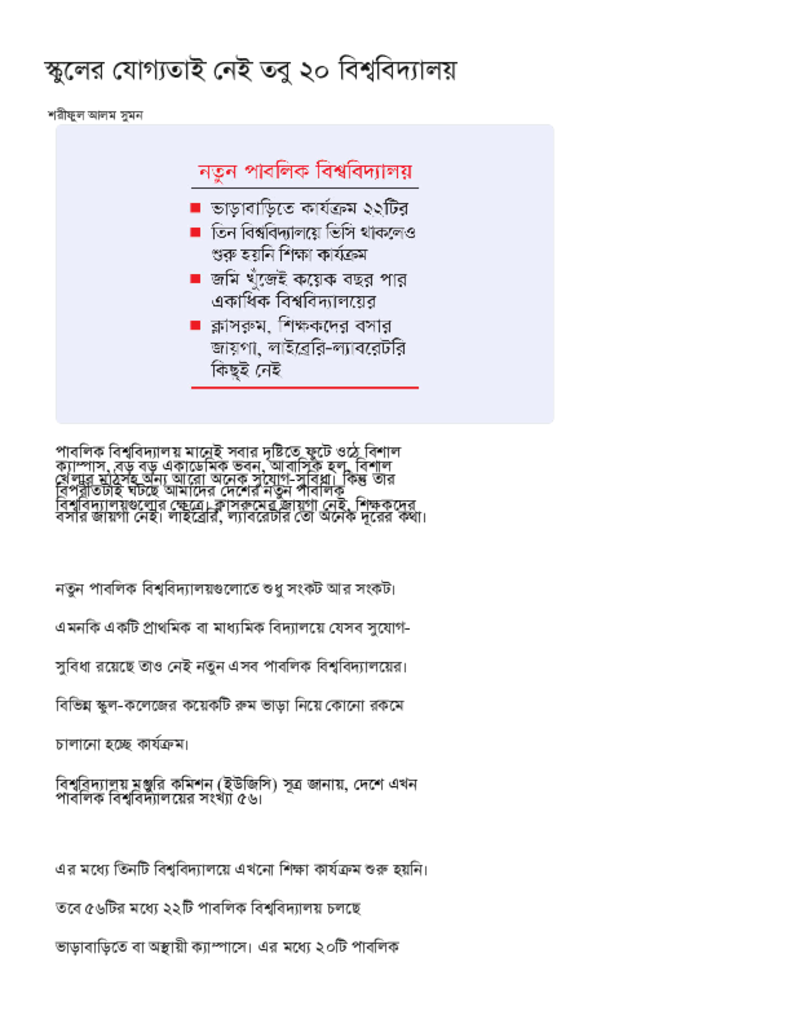 স্কুলের যোগ্যতাই নেই তবু ২০ বিশ্ববিদ্যালয়.pdf Published on 29 September 2025 Newspaper দৈনিক কালের কন্ঠ Category Personal Opinion / Discussion / Commentary General Education Download