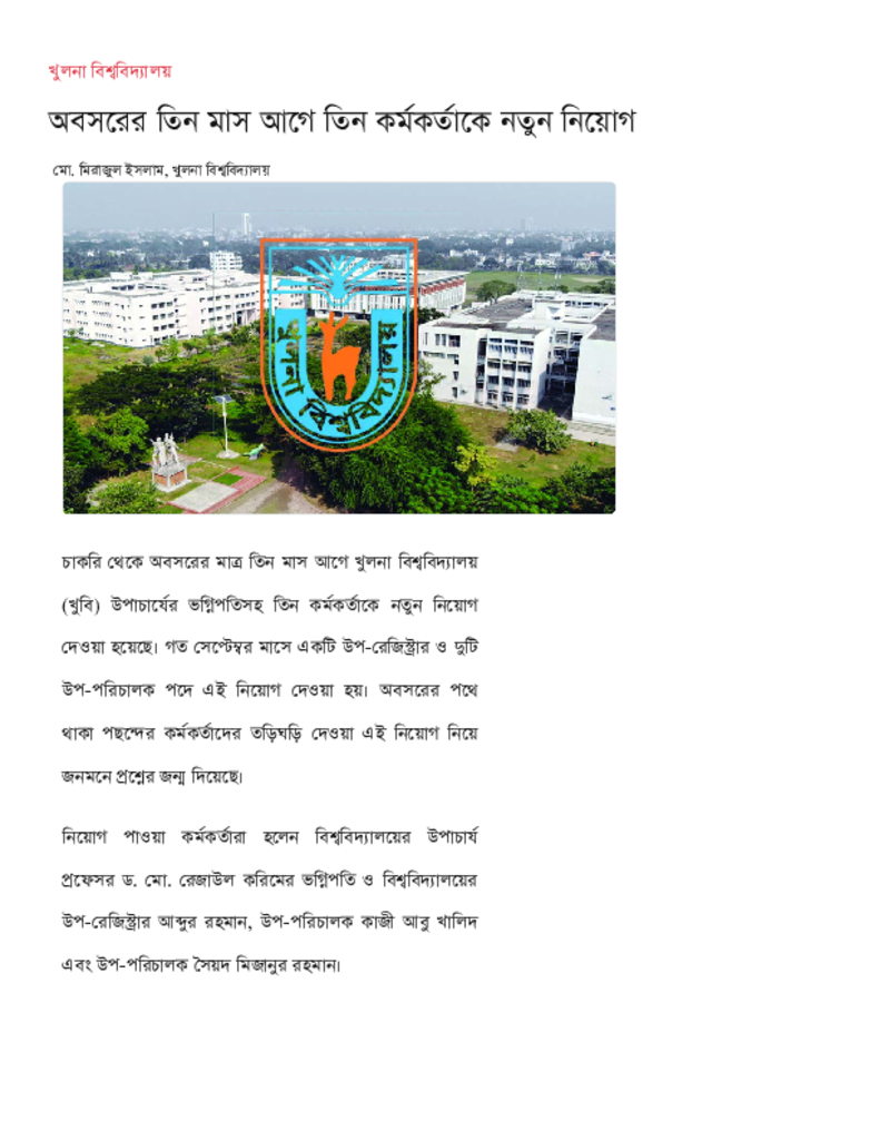 অবসরের তিন মাস আগে তিন কর্মকর্তাকে নতুন নিয়োগ.pdf Published on 07 October 2025 Newspaper দৈনিক কালের কন্ঠ Category Others General Education Download