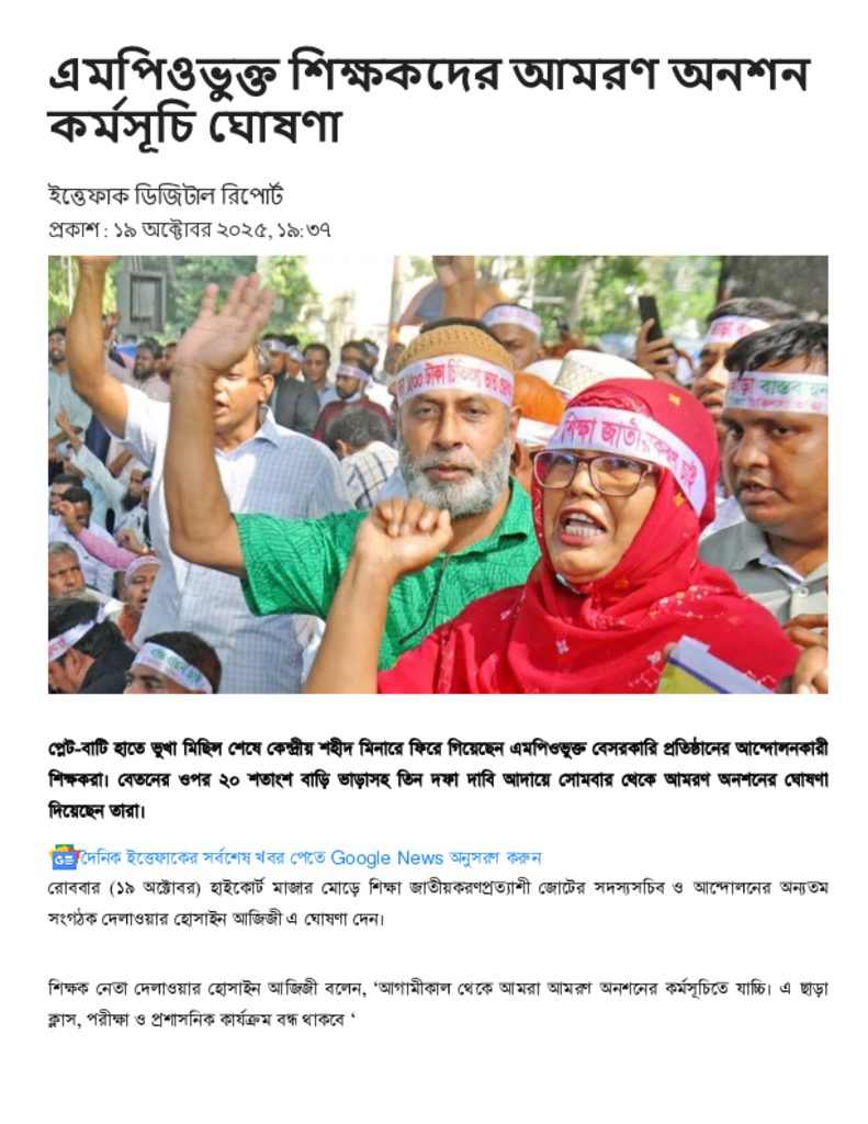 এমপিওভুক্ত শিক্ষকদের আমরণ অনশন কর্মসূচি ঘোষণা.pdf Published on 19 October 2025 Newspaper দৈনিক ইত্তেফাক Category Others Download