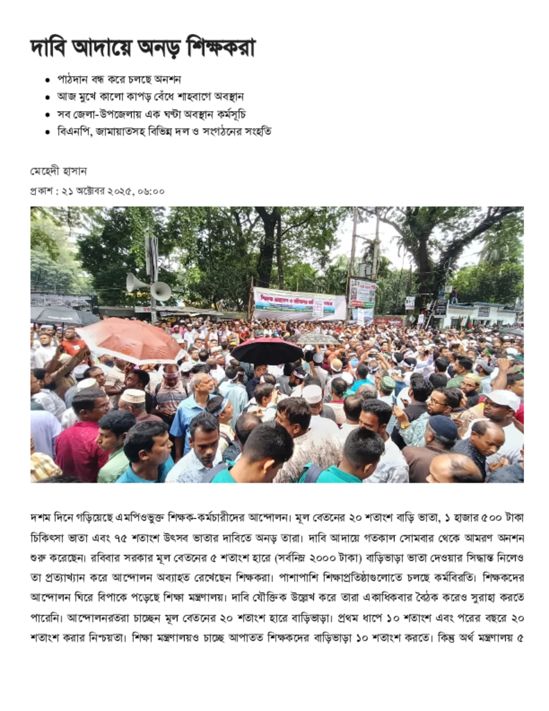 দাবি আদায়ে অনড় শিক্ষকরা.pdf Published on 21 October 2025 Newspaper দৈনিক ইত্তেফাক Category Others Download