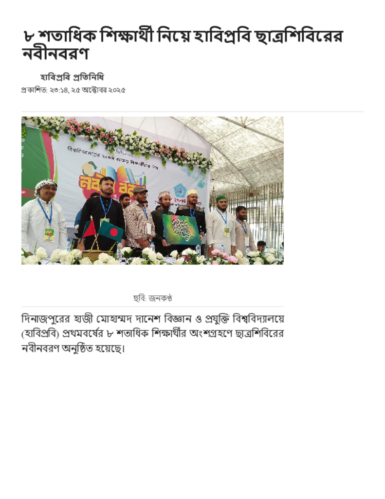 ৮ শতাধিক শিক্ষার্থী নিয়ে হাবিপ্রবি ছাত্রশিবিরের নবীনবরণ.pdf Published on 25 October 2025 Newspaper দৈনিক জনকণ্ঠ Category Admission / Seat Problem General Education Download