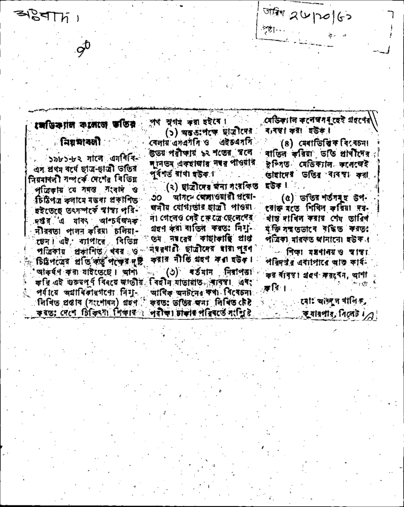 মেডিক্যাল কলেজে ভর্তির নিয়মাবলী Published on Newspaper দৈনিক সংবাদ Category General Education Download