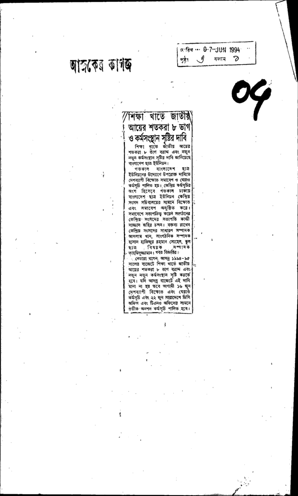 শিক্ষা খাতে জাতীয় আয়ের শতকরা ৮ভাগ ও কর্মসংস্থান সৃষ্টির দাবি Published on Newspaper দৈনিক আজকের কাগজ Category Education Policy / Education Commission Download
