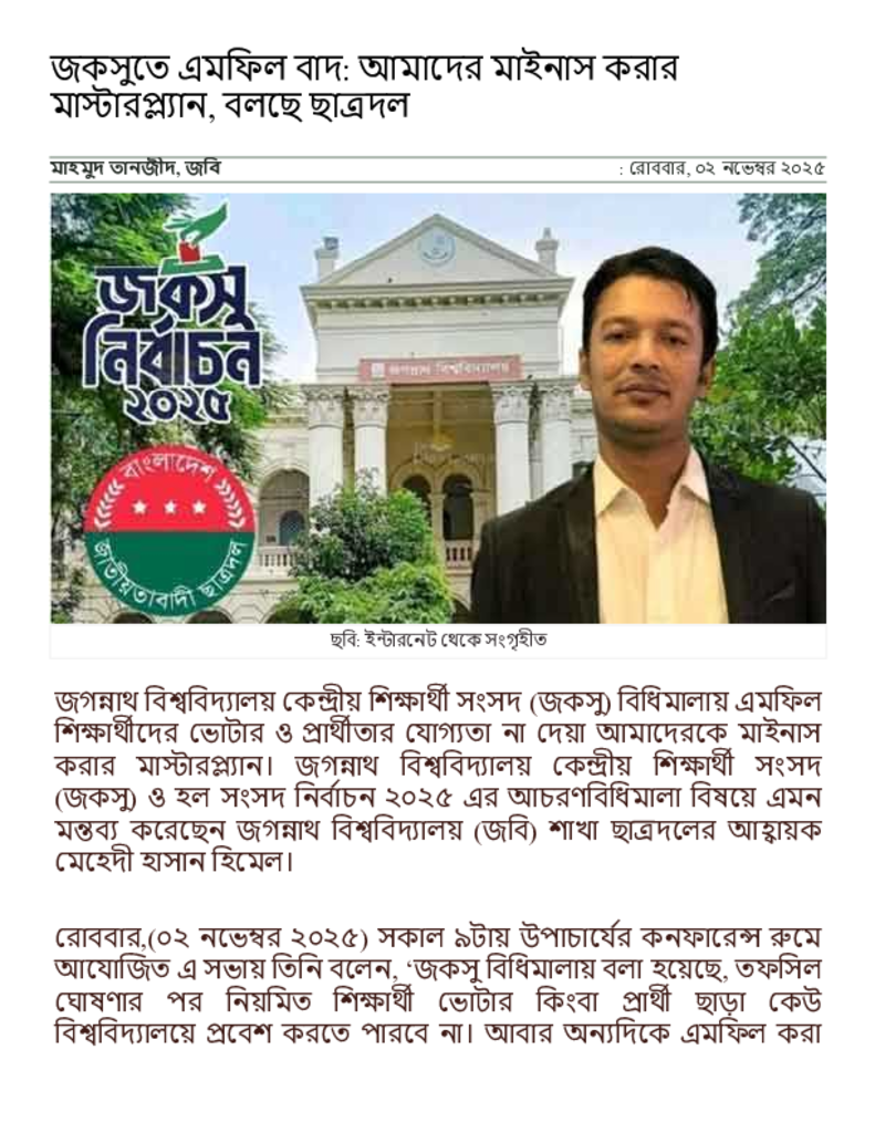 জকসুতে এমফিল বাদ_ আমাদের মাইনাস করার মাস্টারপ্ল্যান, বলছে ছাত্রদল.pdf Published on 02 November 2025 Newspaper দৈনিক সংবাদ Category Student Politics General Education Download