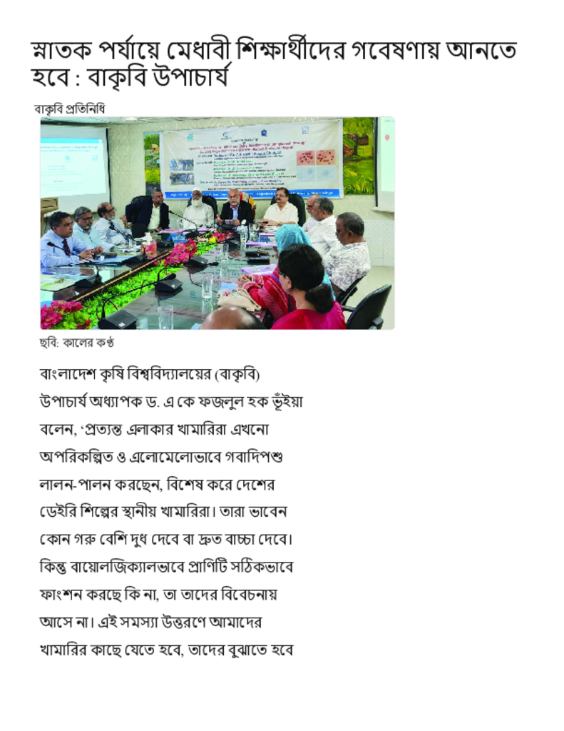 স্নাতক পর্যায়ে মেধাবী শিক্ষার্থীদের গবেষণায় আনতে হবে _ বাকৃবি উপাচার্য.pdf Published on 16 November 2025 Newspaper দৈনিক কালের কন্ঠ Category Personal Opinion / Discussion / Commentary General Education Download