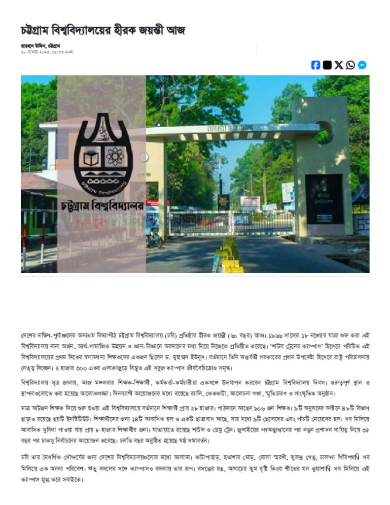 চট্টগ্রাম বিশ্ববিদ্যালয়ের হীরক জয়ন্তী আজ.pdf Published on 18 November 2025 Newspaper দৈনিক আমাদের সময় Category General Education General Education Download