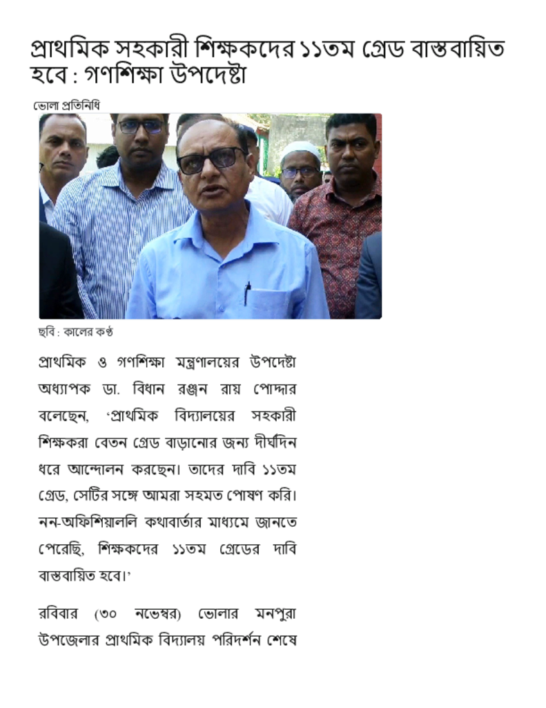 প্রাথমিক সহকারী শিক্ষকদের ১১তম গ্রেড বাস্তবায়িত হবে _ গণশিক্ষা উপদেষ্টা.pdf Published on 30 November 2025 Newspaper দৈনিক কালের কন্ঠ Category Educational Ministry / Departments Education Ministry / Division / Directorate Download