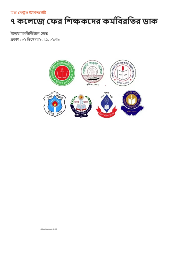 ৭ কলেজে ফের শিক্ষকদের কর্মবিরতির ডাক.pdf Published on 02 December 2025 Newspaper দৈনিক ইত্তেফাক Category General Education General Education Download
