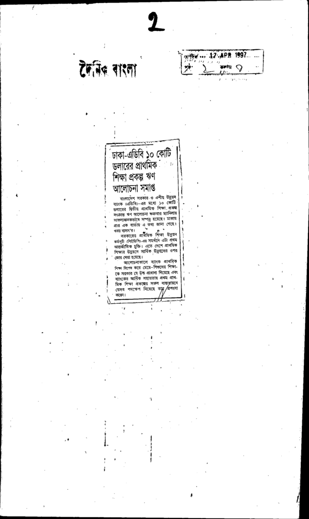 ঢাক-এডিবি ১০ কোটি ডলারের প্রাথমিক শিক্ষা প্রকল্প ঋণ আলোচনা সমাপ্ত Published on Newspaper দৈনিক বাংলা Category Education Policy / Education Commission Download