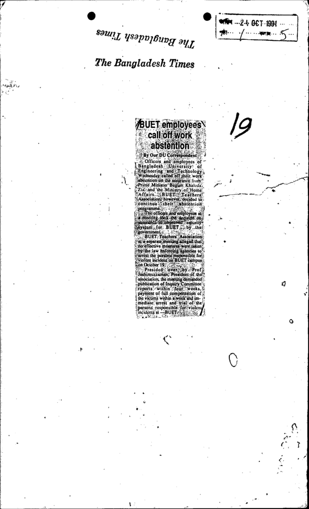 Buet employees call of work abstention Published on Newspaper The Bangladesh Times Category Professional Education Professional Education Engineering Download