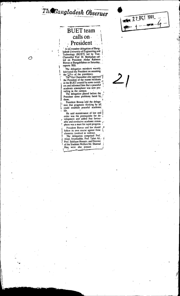 Buet team calls on president Published on Newspaper The Bangladesh Observer Category Professional Education Professional Education Engineering Download