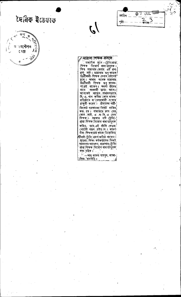 মাদ্রাসা শিক্ষক প্রসঙ্গে