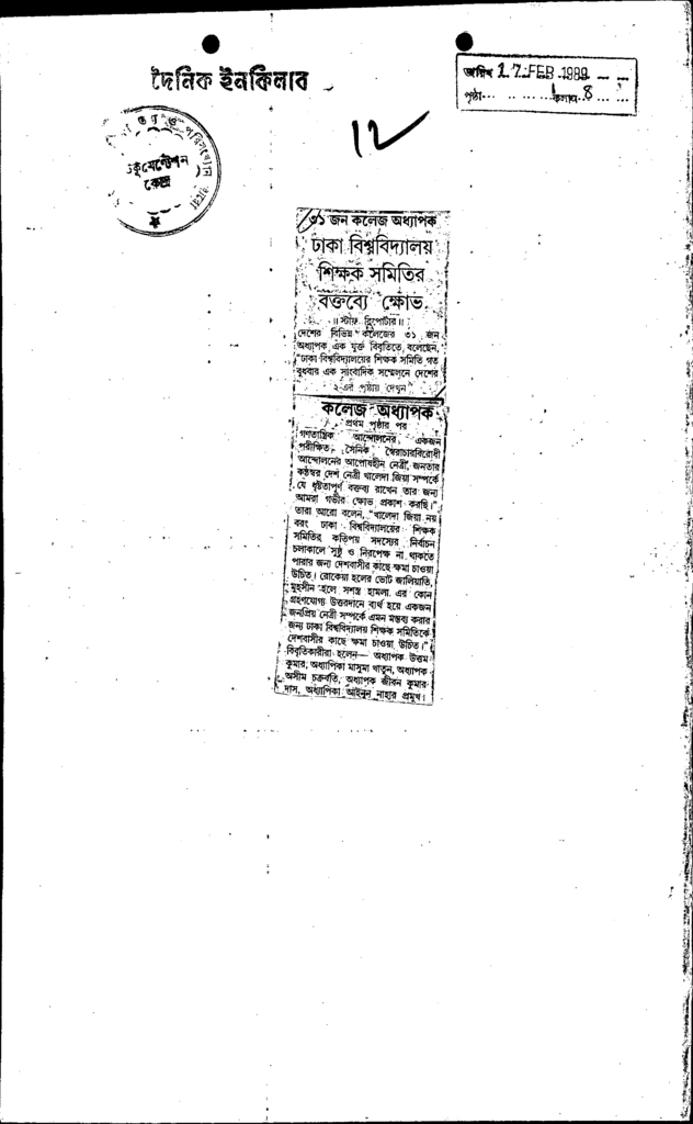 ৩১জন কলেজ অধ্যাপক ঢাকা বিশ্ববিদ্যালয় শিক্ষক সমিতির বক্তব্যে ক্ষোভ