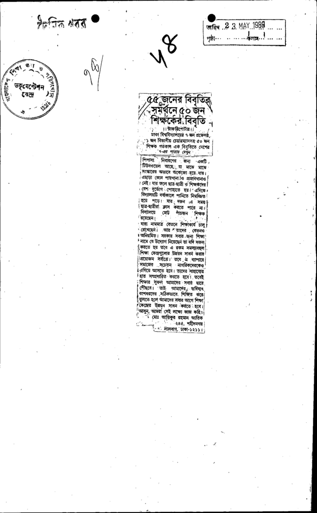 ৫৫ জনের বিবৃতির সমর্তনে ৫০ জন শিক্ষকের বিবৃতি Published on Newspaper দৈনিক খবর Category Personal Opinion / Discussion / Commentary Download