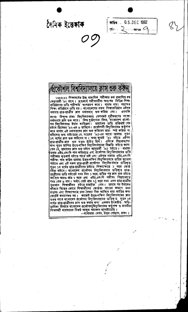 প্রকৌশল বিশ্ববিদ্যালয়ে ক্লাস শুরু করুন Published on Newspaper দৈনিক ইত্তেফাক Category Professional Education Professional Education Engineering Download