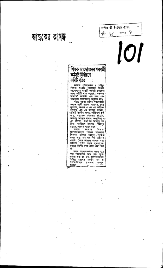 শিক্ষক আন্দোলনের পরবর্তী কর্মসূচি নির্ধারণে কমিটি গঠিত Published on Newspaper দৈনিক আজকের কাগজ Category General Education General Education Download