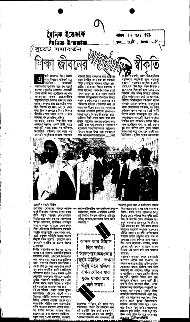 বুয়েট সামবর্তন শিক্ষা জীবনের আনুষ্ঠানিক স্বীকৃতি