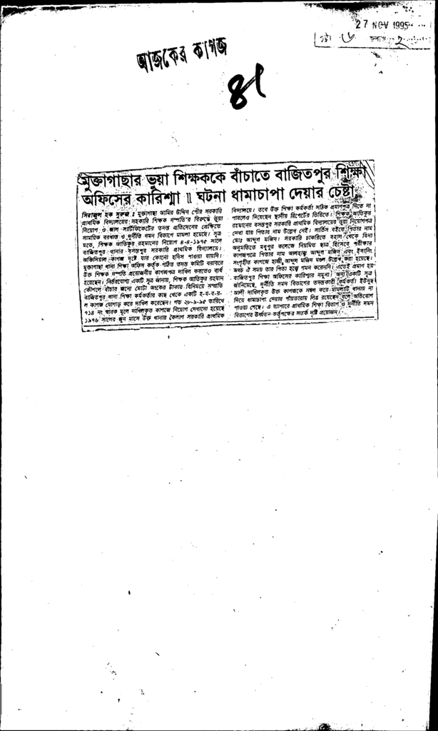 মুক্তাগাছার ভুয়া শিক্ষককে বাঁচাতে বাজিতপুর শিক্ষ অফিসের কারিশ্মা।। ঘটনা ধামাচাপা দেয়ার চেষ্টা Published on Newspaper দৈনিক আজকের কাগজ Category Education Policy / Education Commission Download