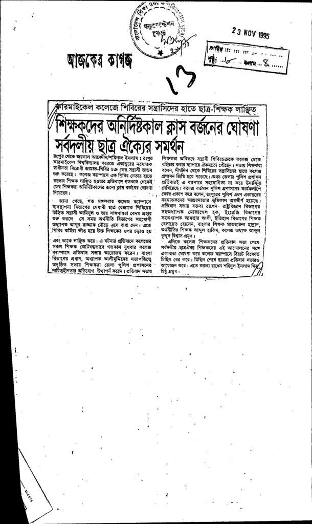 শিক্ষকদের অনির্দিষ্টকাল ক্লাস বর্জনের ঘোষণা সর্বদলীয় ছাত্র ঐক্যের সমর্থন Published on Newspaper দৈনিক আজকের কাগজ Category Education Policy / Education Commission Download