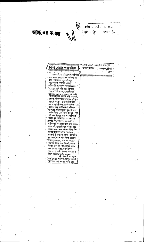শিক্ষাবোর্ডের পুনঃপরীক্ষা Published on Newspaper দৈনিক আজকের কাগজ Category Personal Opinion / Discussion / Commentary Personal Speech / Discussion / Comentary Secondary and Higher Secondary Education Download