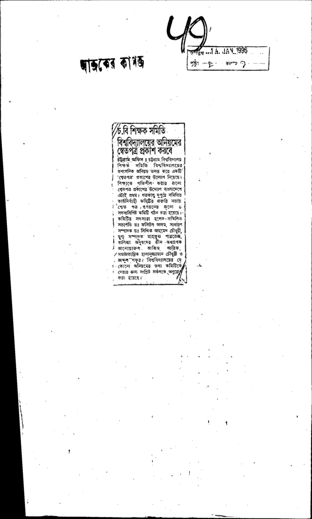 চ.বি শিক্ষক সমিতি বিশ্ববিদ্যালয়ের অনিয়মের স্বেতপত্র প্রকাশ করবে Published on Newspaper দৈনিক আজকের কাগজ Category Education Policy / Education Commission Download