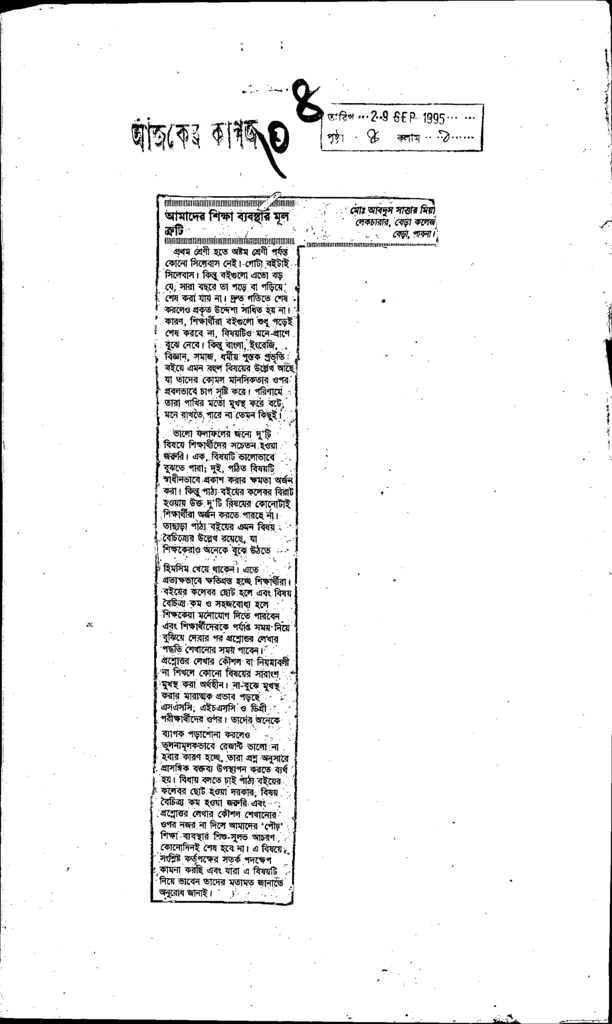 আমাদের শিক্ষা ব্যবস্থার মূল ত্রুটি Published on Newspaper দৈনিক আজকের কাগজ Category Personal Opinion / Discussion / Commentary Personal Speech / Discussion / Comentary Secondary and Higher Secondary Education Download