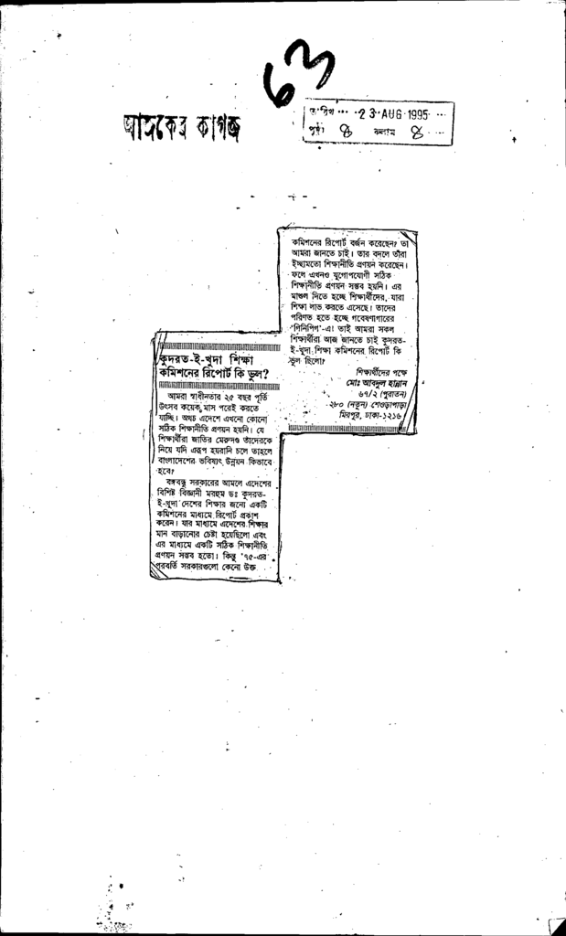 কুদরত-ই-খুদা কমিশনের রিপোর্ট কি ভূল? Published on Newspaper দৈনিক আজকের কাগজ Category Personal Opinion / Discussion / Commentary Personal Speech / Discussion / Comentary Secondary and Higher Secondary Education Download