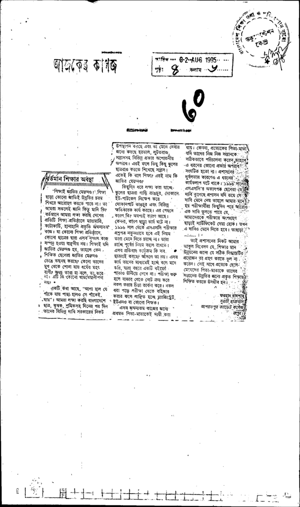 বর্তমান শিক্ষার অবস্থা Published on Newspaper দৈনিক আজকের কাগজ Category Personal Opinion / Discussion / Commentary Personal Speech / Discussion / Comentary Secondary and Higher Secondary Education Download