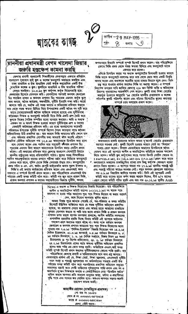 মাননীয়া প্রধানমন্ত্রী বেগম খালেদা জিয়ার জরুরি হস্তক্ষেপ কামনা করছি Published on Newspaper দৈনিক আজকের কাগজ Category Personal Opinion / Discussion / Commentary Personal Speech / Discussion / Comentary Secondary and Higher Secondary Education Download