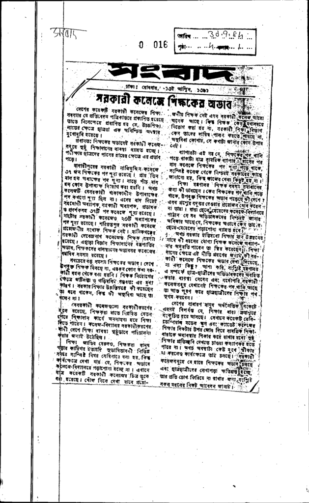 সরকারী কলেজে শিক্ষকের অভাব Published on Newspaper দৈনিক সংবাদ Category General Education General Education Download