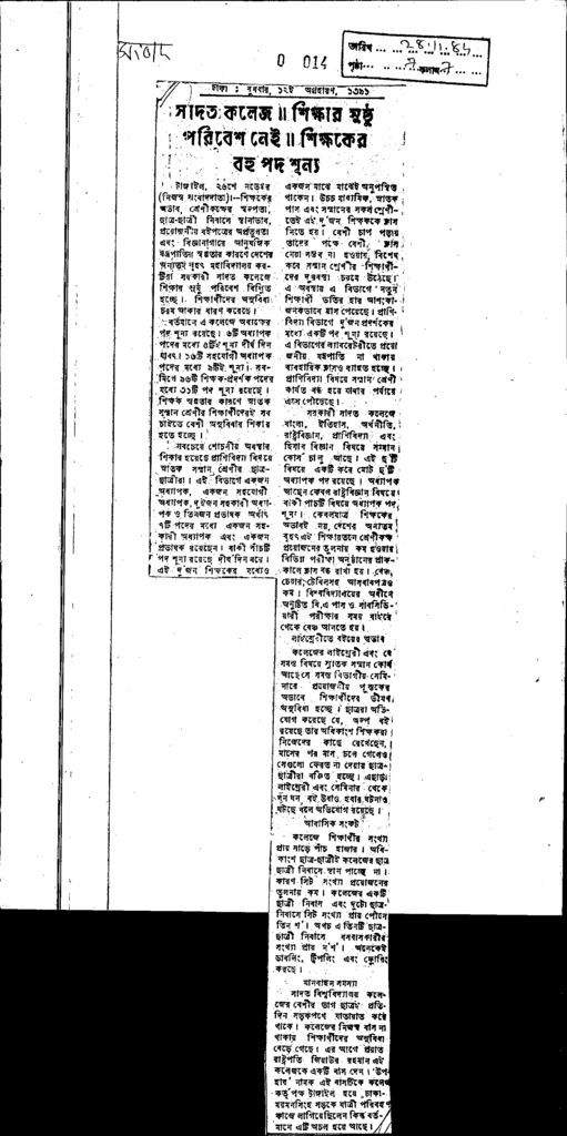 সাদত কলেজ শিক্ষার সুষ্ঠু পরিবেশ নেই Published on Newspaper দৈনিক সংবাদ Category General Education General Education Download