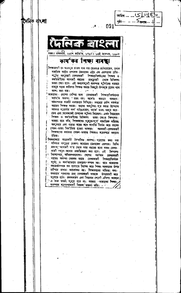 কার্যকর শিক্ষা ব্যবস্থা Published on Newspaper দৈনিক বাংলা Category Admission / Seat Problem Download