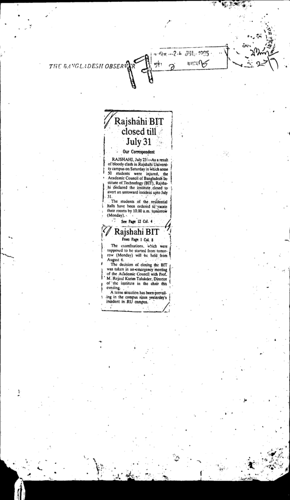 Rajshahi bit closed till july 31 Published on Newspaper The Bangladesh Observer Category Professional Education Professional Education Engineering Download