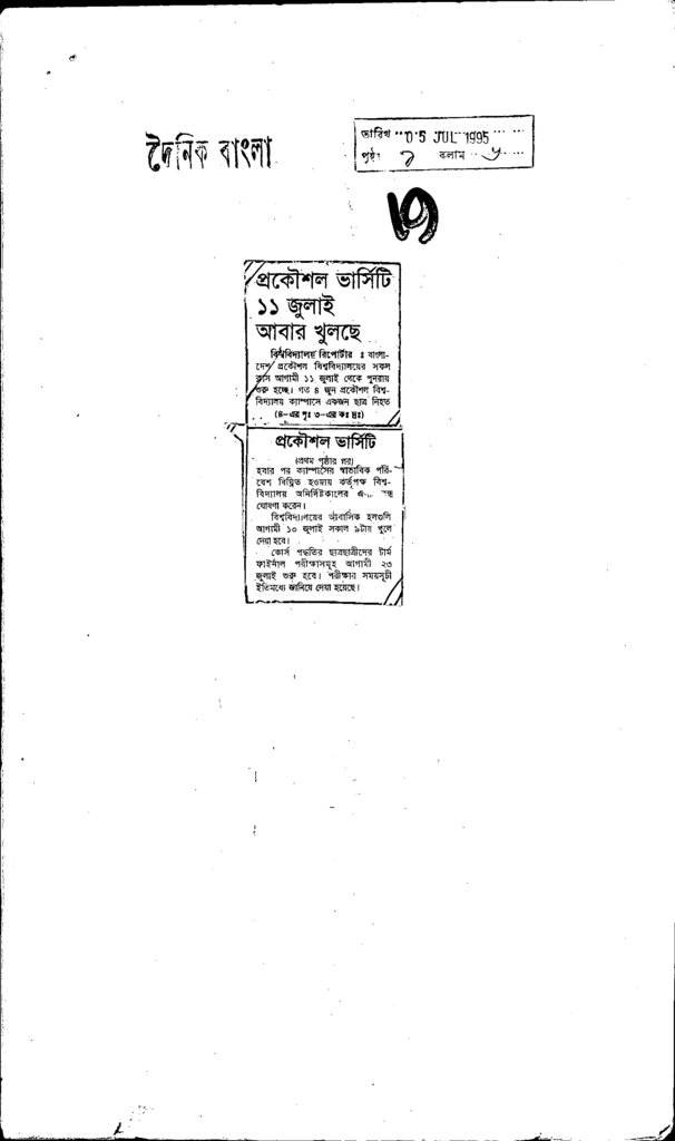 প্রকৌশল ভার্সিটি ১১ জুলাই আবার খুলছে Published on Newspaper দৈনিক বাংলা Category Professional Education Professional Education Engineering Download