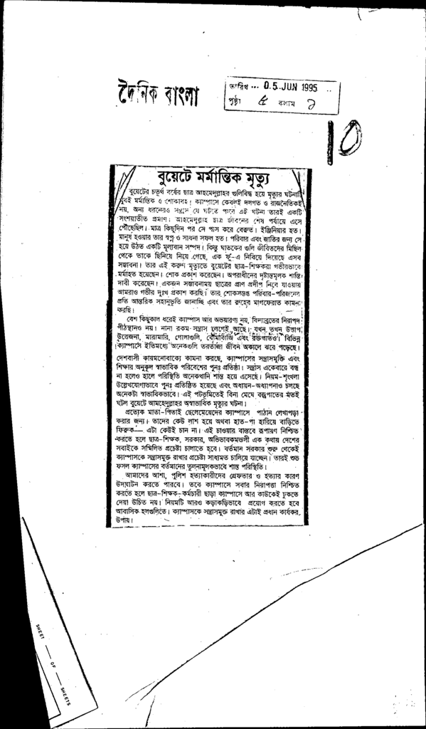 বুয়েটে মর্মান্তিক মৃত্যু Published on Newspaper দৈনিক বাংলা Category Professional Education Professional Education Engineering Download