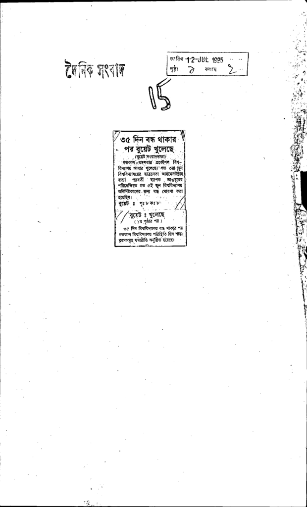 ৩৫ দিন বন্ধ থাকার পর বুয়েট খুলেছে Published on Newspaper দৈনিক সংবাদ Category Professional Education Professional Education Engineering Download